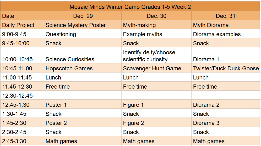 Mosaic Minds Winter Creative Camp (6 Days)